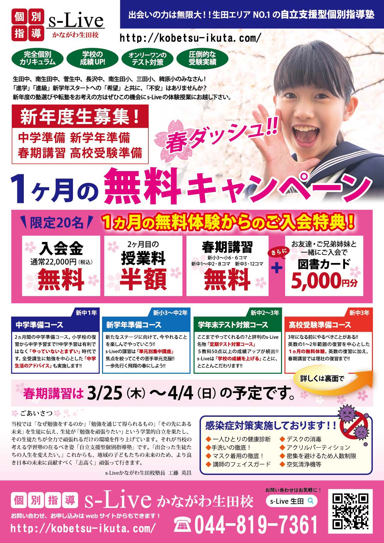春期講習は3/25(木)~4/4(日)の予定です。