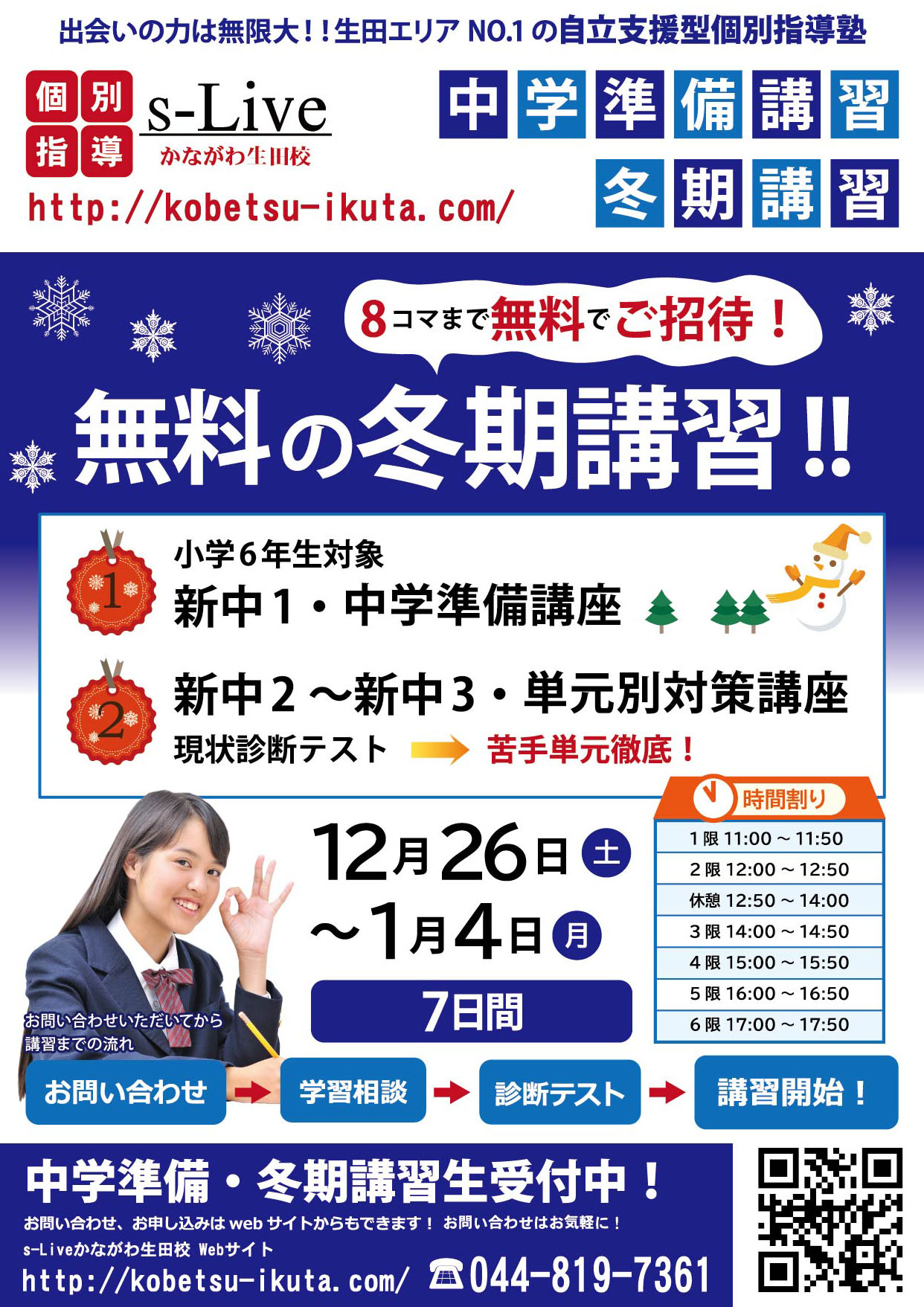 新中2年生~3年生には単元別対策講座を予定しております。この時期に苦手を克服しよう!