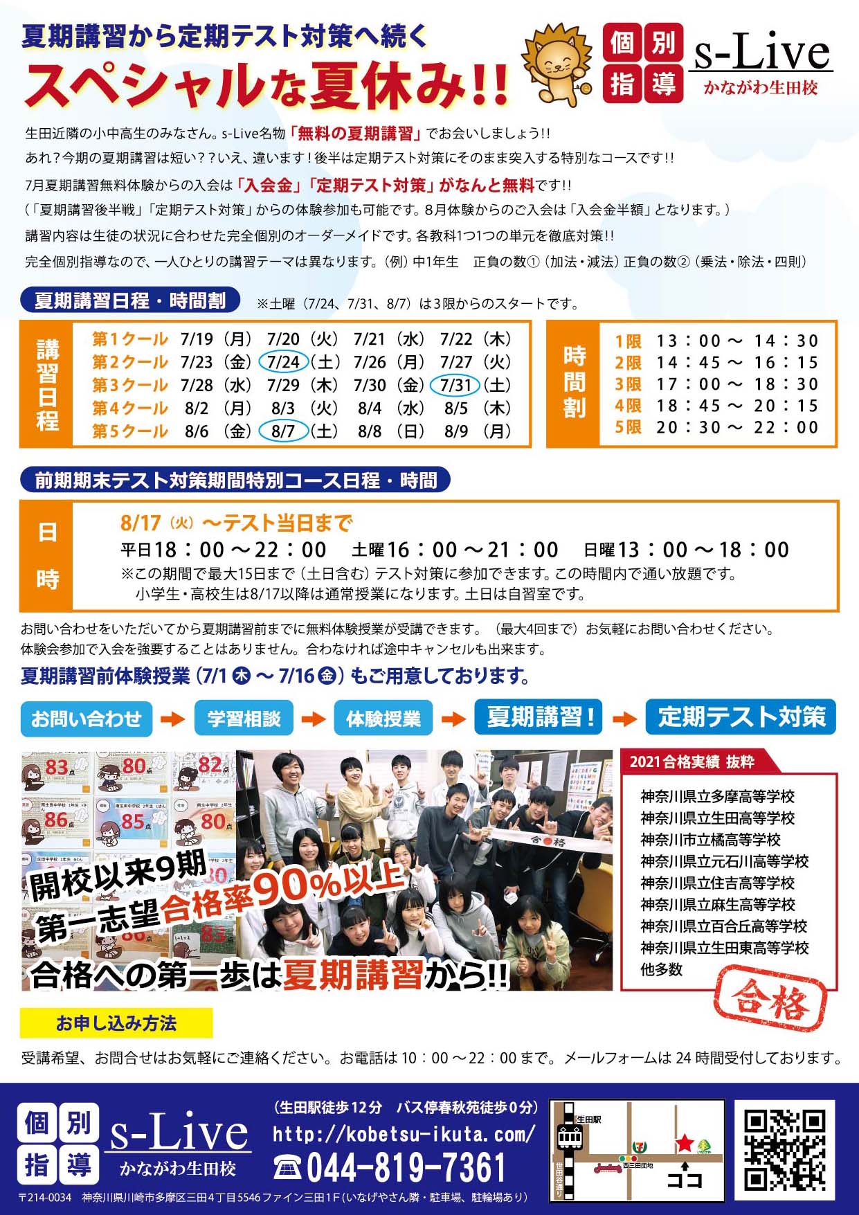 夏期講習から定期テスト対策まで続く特別コースとなっております。