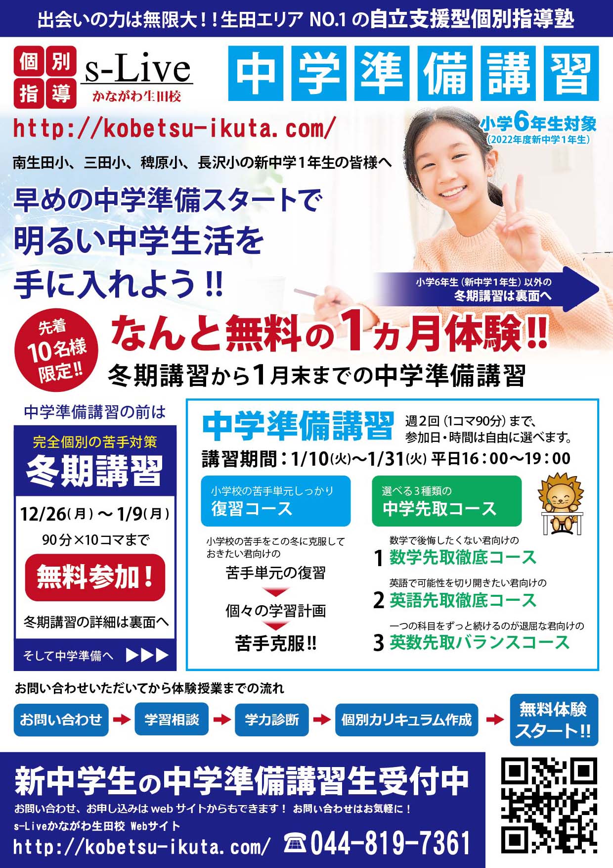 来年中学1年生になる小学6年生に向けては中学準備講習も用意しております。